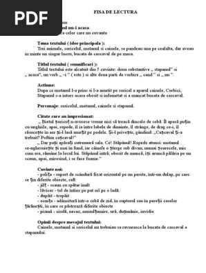 Fisa De Lectura Puisorii De Emil Garleanu