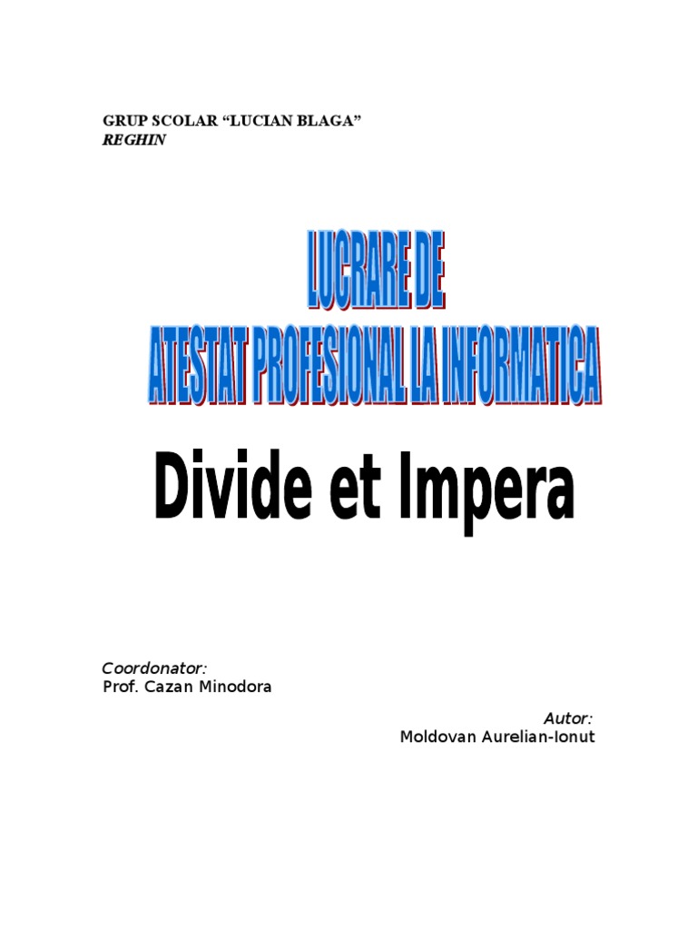 Atestat Informatica Metoda Divide Et Impera Atestat Informatica C