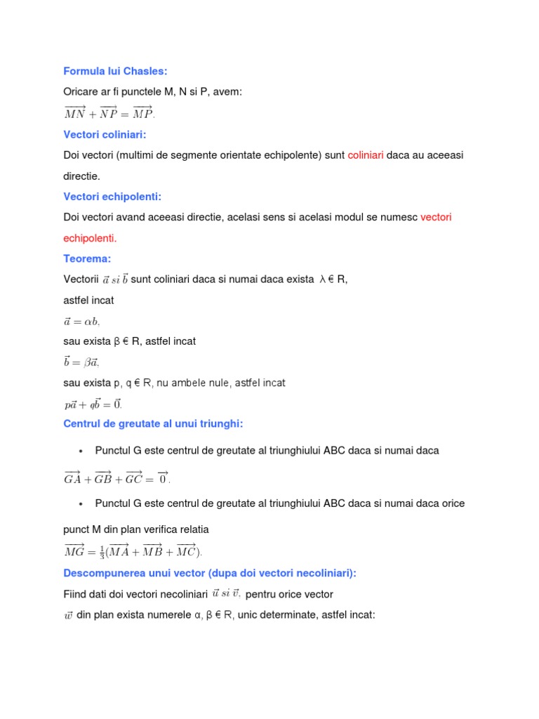 Vectori In Plan Vectori Liberi Vectori Coliniari