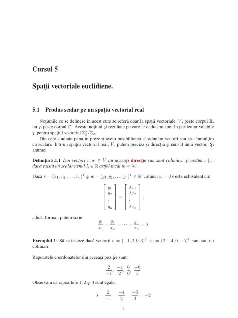 Cursul 5 Spat Ii Vectoriale Euclidiene 5 1 Produs Scalar Pe Un Spat Iu Vectorial Real