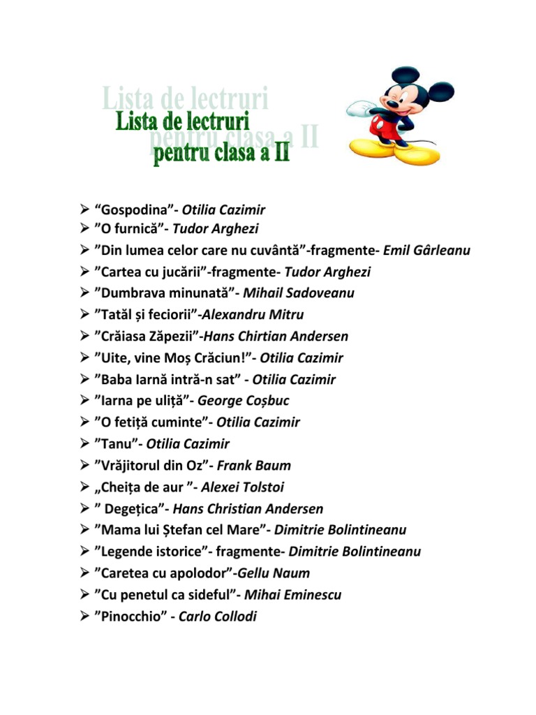 Doc Lecturi Obligatorii Clasa A V Cornel Alexandru Academia Edu