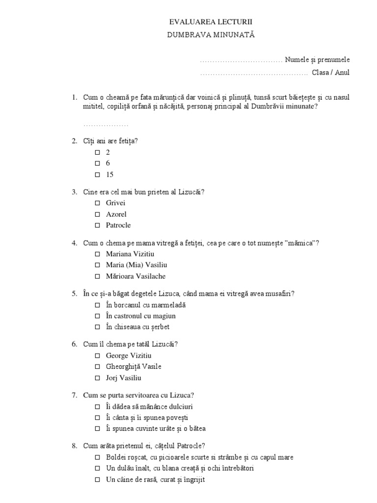 Dumbrava Minunata Fisa De Lectura