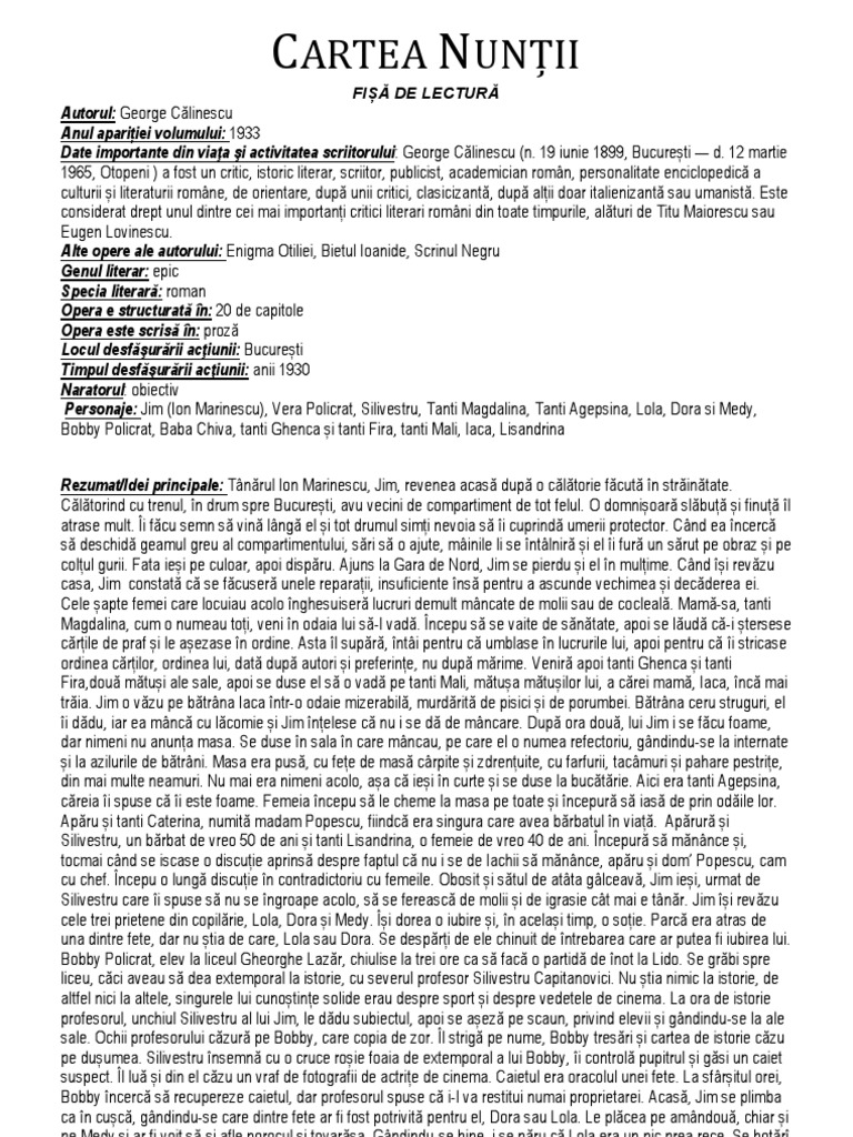 Fisa De Lectura Ultima Noapte De Dragoste Intaia Noapte De Razboi