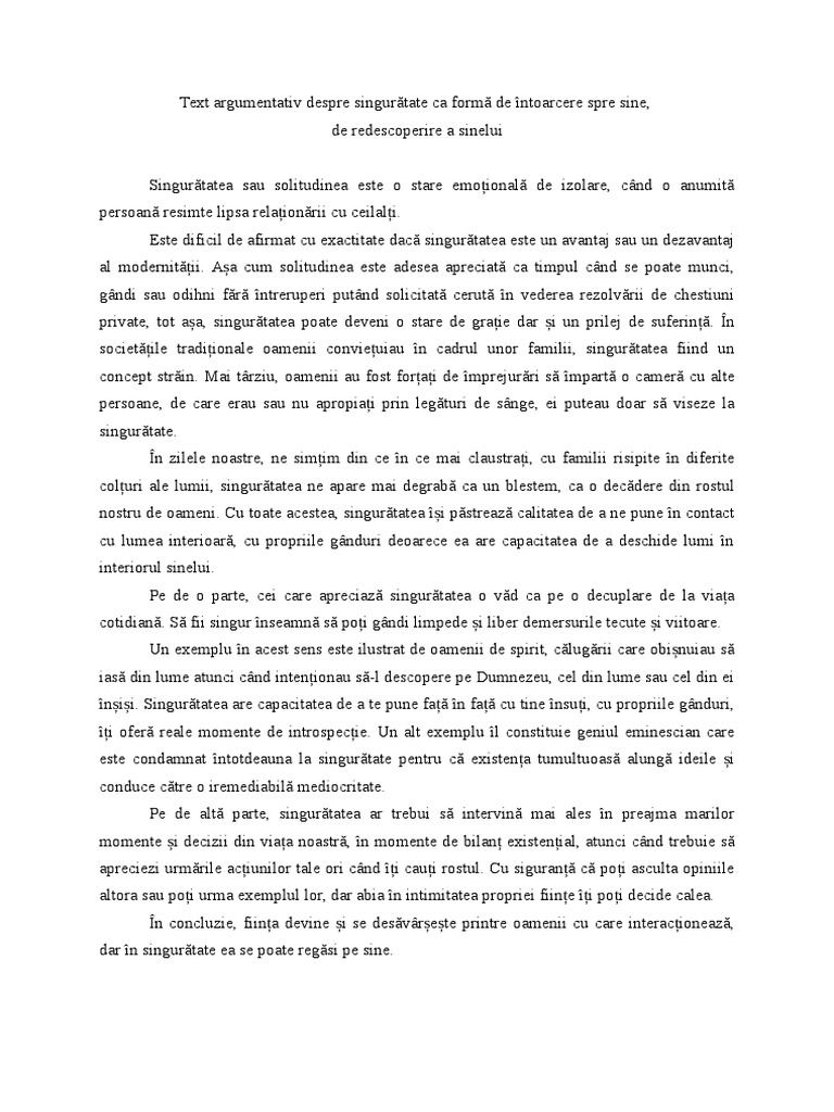 Text Argumentativ Singurătatea
