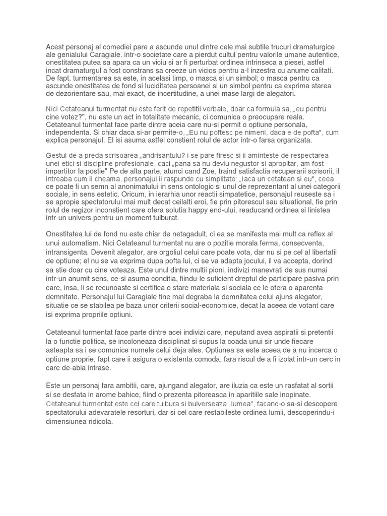 Cetateanul Turmentat Din O Scrisoare Pierduta Caracterizare