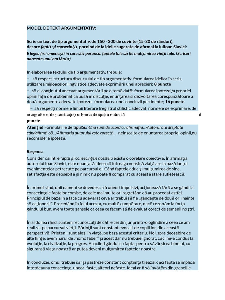 Model Text Argumentativ Bac